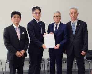 小田川市長、福岡堰土地改良区の谷口理事長と共に、茨城県土木部長へ対し、本市の一級河川:中通川の整備に関する要望活動を行いました。